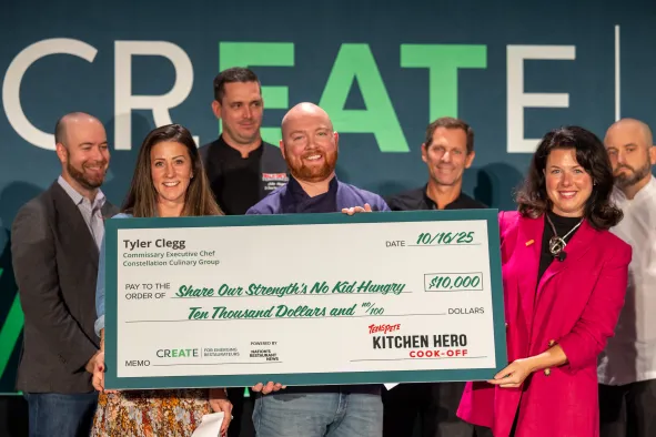 That operational excellence and culinary expertise led Clegg to represent Constellation Culinary Group and Elior North America at the 13th Annual Texas Pete® Kitchen Hero Cook-Off in Nashville, Tennessee, where he took home the title of Texas Pete® Kitchen Hero from a panel of judges and experts. In addition to the prestigious award, Clegg was also on hand to help present a $10,000 donation to Share Our Strength’s No Kid Hungry campaign on behalf of Garner Foods.